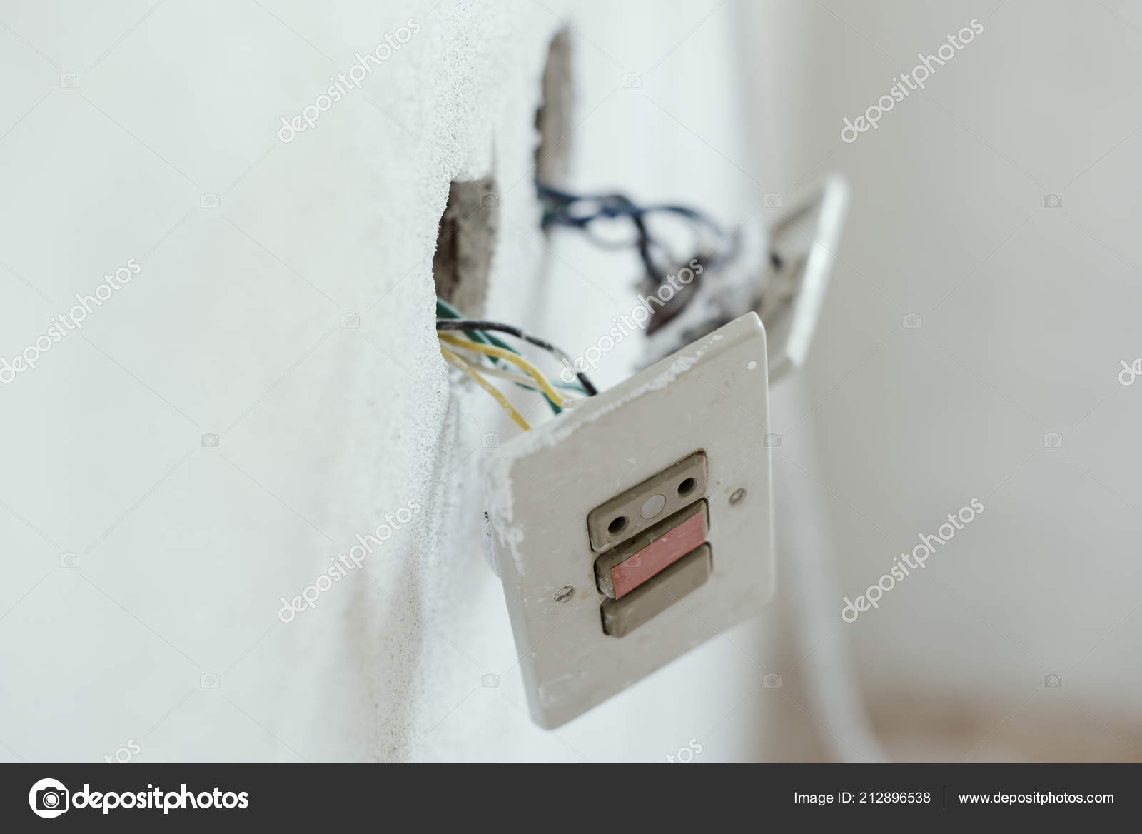 Wall Socket Installation Renovation Close Old Socket Wiring Stock Photo Image By C Stokkete 212896538