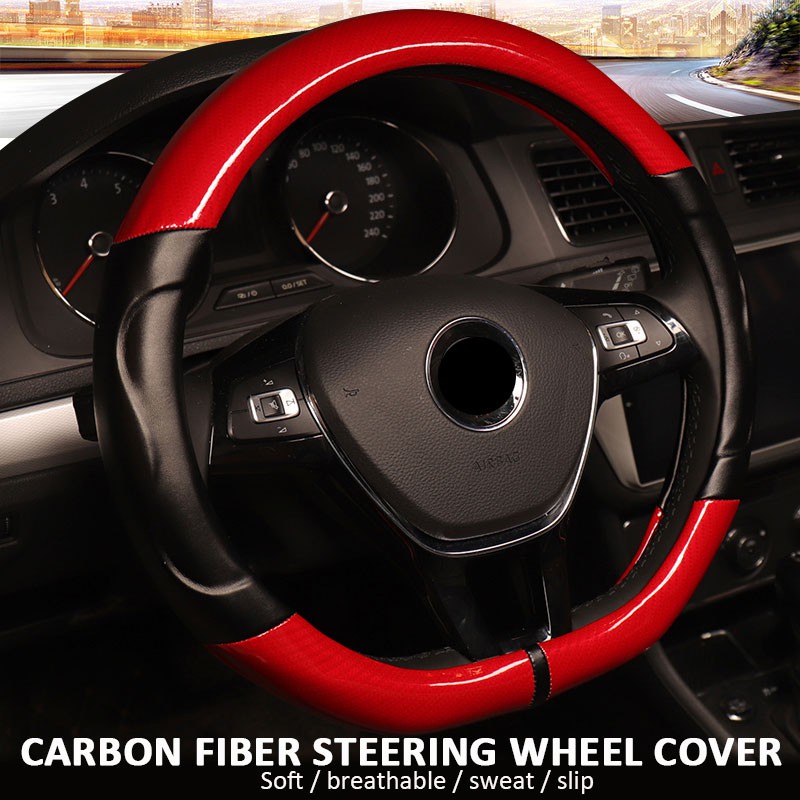 38cm Carbon Fiber Leather Stitching Car Steering Wheel Covers Anti Slip Black Universal Sale Banggood Com