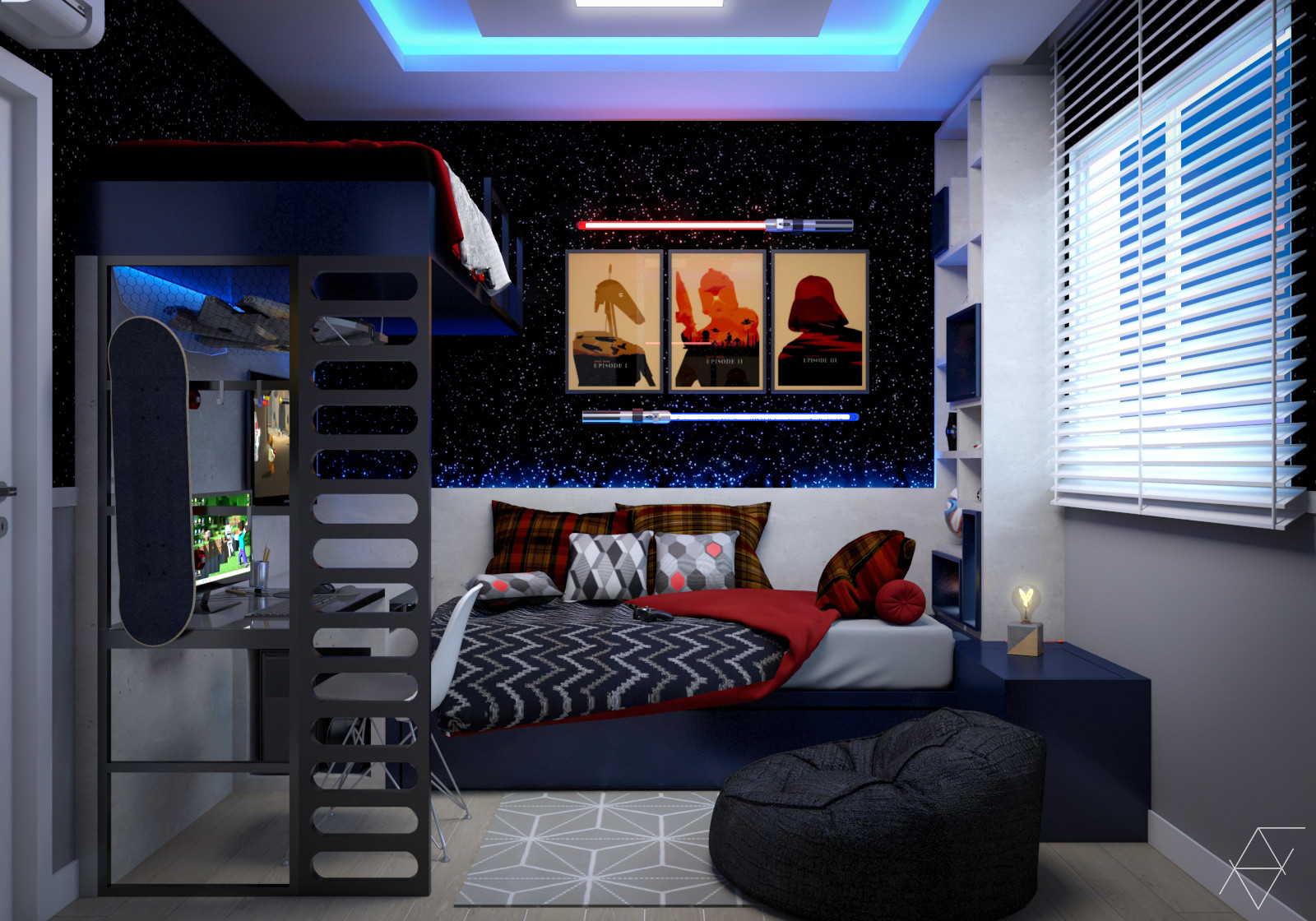 When you look out for a perfect Minecraft Bedroom or a bedroom customised for kids you can try out various star wars bedroom ideas for the rooms. Every Star Wars themed room needs a stormtrooper and this room has several. They have so many cute ones.