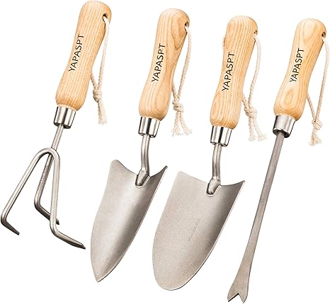 Amazon Com Yapaspt Gardening Tools 4 Piece Heavy Duty Garden Hand Kit Rust Resistant Garden Tool Sets With Trowel Cultivator Weeder For Flower And Vegetable Plants Care Garden Outdoor