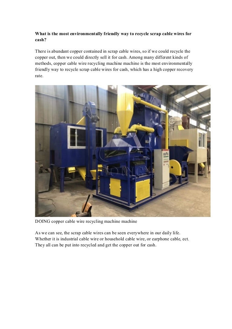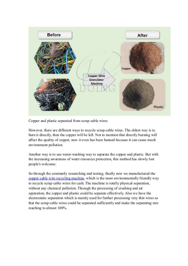 Through crushing air separating and electrostatic separation it can recycle cable wires for cash. With our recycling facility we can meticulously process scrap cables of. Recycling cables aids in the resource recovery of both the metal and the plastic outer for reuse.