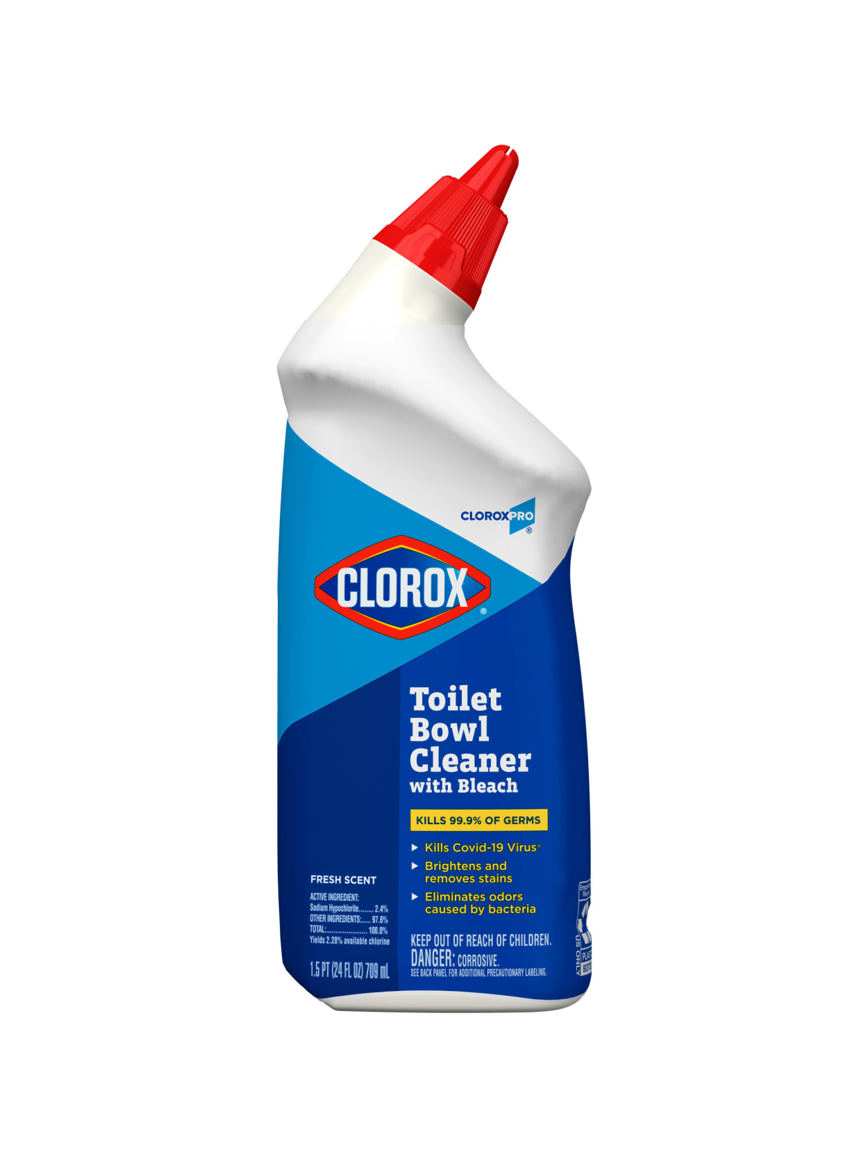 A gallon of Clorox bleach regular variety can be used across the home A bottle of Clorox Toilet Bowl Cleaner With Bleach.